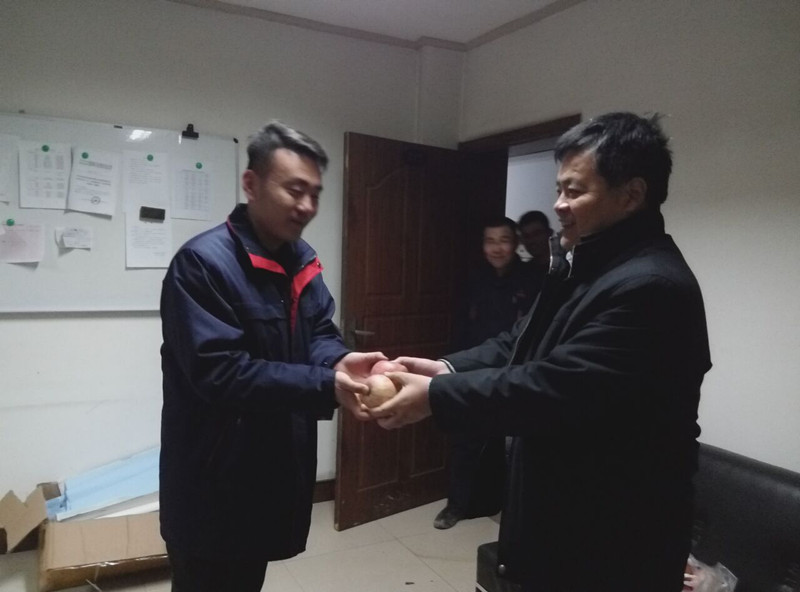 平安夜之际,金威水泥总经理张文学带领值班人员走上一线岗位,为职工及施工现场加班人员送去了苹果,也送出了一份平安和祝福。送出的苹果又圆有红,意在把平安与团圆送给自己的职工,让职工在寒冬里感受到公司的一份关心。员工纷纷表示要加倍努力,为金威水泥的建设而努力。