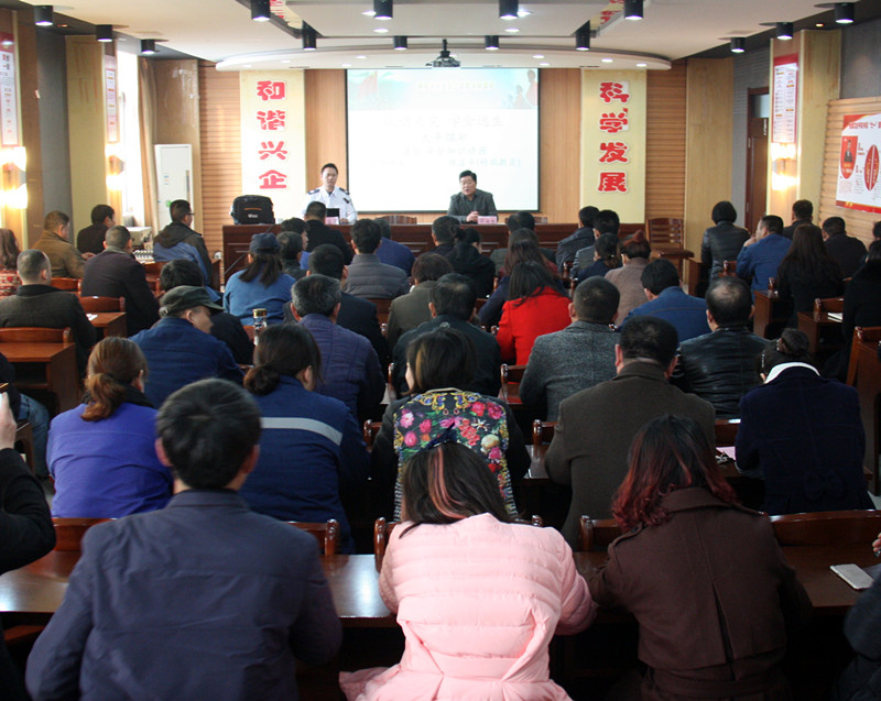 为进一步增强职工的消防责任意识和消防安全素质,提高企业防范突发火灾事故的能力,2月14日上午,太平煤矿邀请济宁政安消防技术有限公司的张益丰教官对全矿干部职工进行了以"认识火灾,学会逃生"为主题的消防安全知识讲座并开展了实地消防演练。矿纪委书记兼工会主席邵作胜参加讲座并致欢迎词,同时强调此次活动对我矿消防安全及职工生命财产安全有着极为重要的意义。