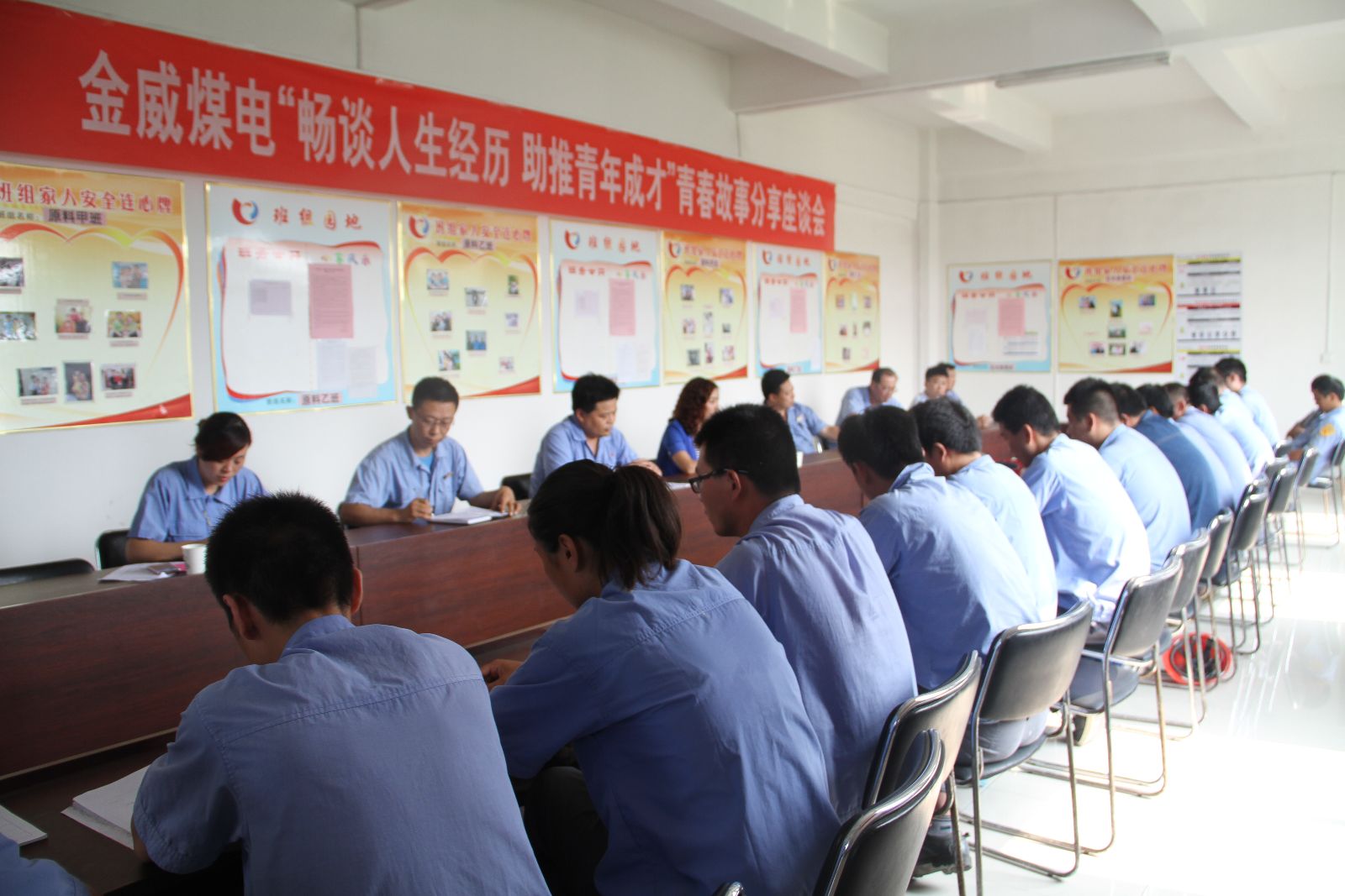 公司团委邀请了技术比武状员、劳动模范、十杰青年代表、节约美德青年代表等身边的青年先进典型以及公司领导参加,利用学习班的时间,分别在化工分公司、热电公司、选煤分公司、水泥公司举办了4场与员工面对面、零距离的交流座谈。来自不同岗位的10位先进代表,用朴实的语言讲述了自已的人生经历、感悟、学习方法以及在工作、生活、事业上的失败、反思、教训等。公司纪委书记吴艳蕊、副总经理张红艳、张文学、王允来等领导也与大家一起共同分享了他们的经历以及经验,并就公司当前形势及今后的发展状况做了介绍,并结合公司的发展实际,对青年人今后的努力方向提出了希望和要求。